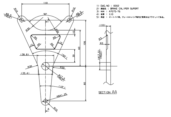 オートバイ改造用のオリジナル部品の設計を行いました。本件では3Dモデリングだけではなく、2D図面も作図し、機械加工で実際に製品製作も行いました。