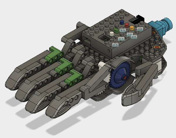 上肢障害を持つお子様がより気軽に電動義手に触れて頂くため、レゴブロックと組み合わせて作れる義手を設計しました。