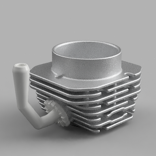 こちらはオートバイのエンジンを模したオブジェ(マグカップ)です。まずは3Dプリントで製作されるようですが、将来的にはアルミの鋳造での製作も計画されているようです。